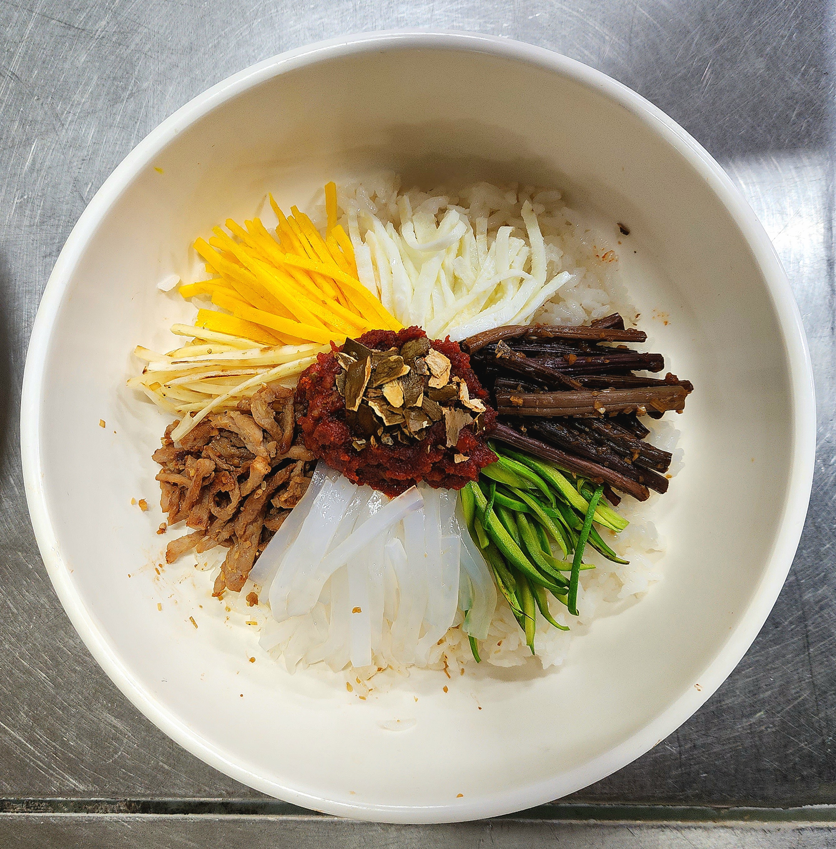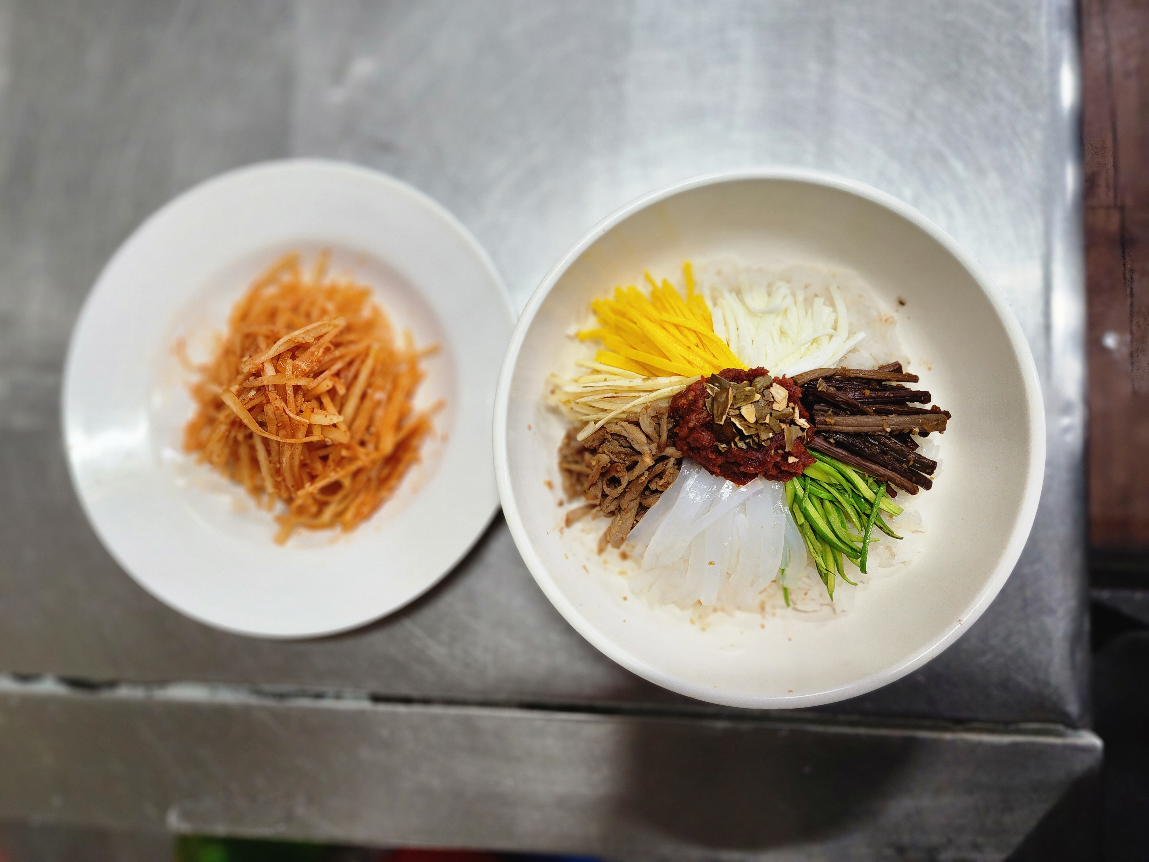생강이 들어간 무채와 비빔밥