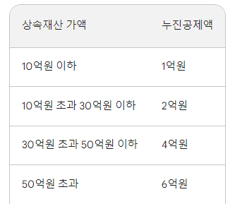 상속세 산출세액에서 누진공제액을 공제한 금액을 상속세액으로 합니다. 누진공제액은 다음과 같습니다.