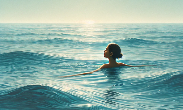 깊고 푸른 바다 위를 나 혼자 유유히 헤엄치고 있었다. 처음에는 물결이 잔잔했고, 바닷속에서 느껴지는 차가운 물이 온몸을 감싸 안으며 평온한 기분이 들었다. 헤엄칠수록 바다의 끝이 보이지 않았지만, 이상하게도 그 무한한 공간 속에서 오히려 자유로움과 여유가 느껴졌다. 그러나 조금씩 물결이 거칠어지기 시작하더니, 큰 파도가 나를 덮칠 것 같은 순간이 다가왔다. 그때마다 나는 긴장했지만, 파도에 몸을 맡기면서도 나 자신이 물속에서 안전하다는 느낌이 들었다. 마치 내가 내 감정 속에서 균형을 찾아가고 있다는 느낌이었다.