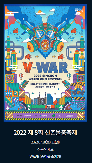 | 서울 무더운 여름 대표 축제 - 신촌 물총 축제 (0) | 2022.06.27 |